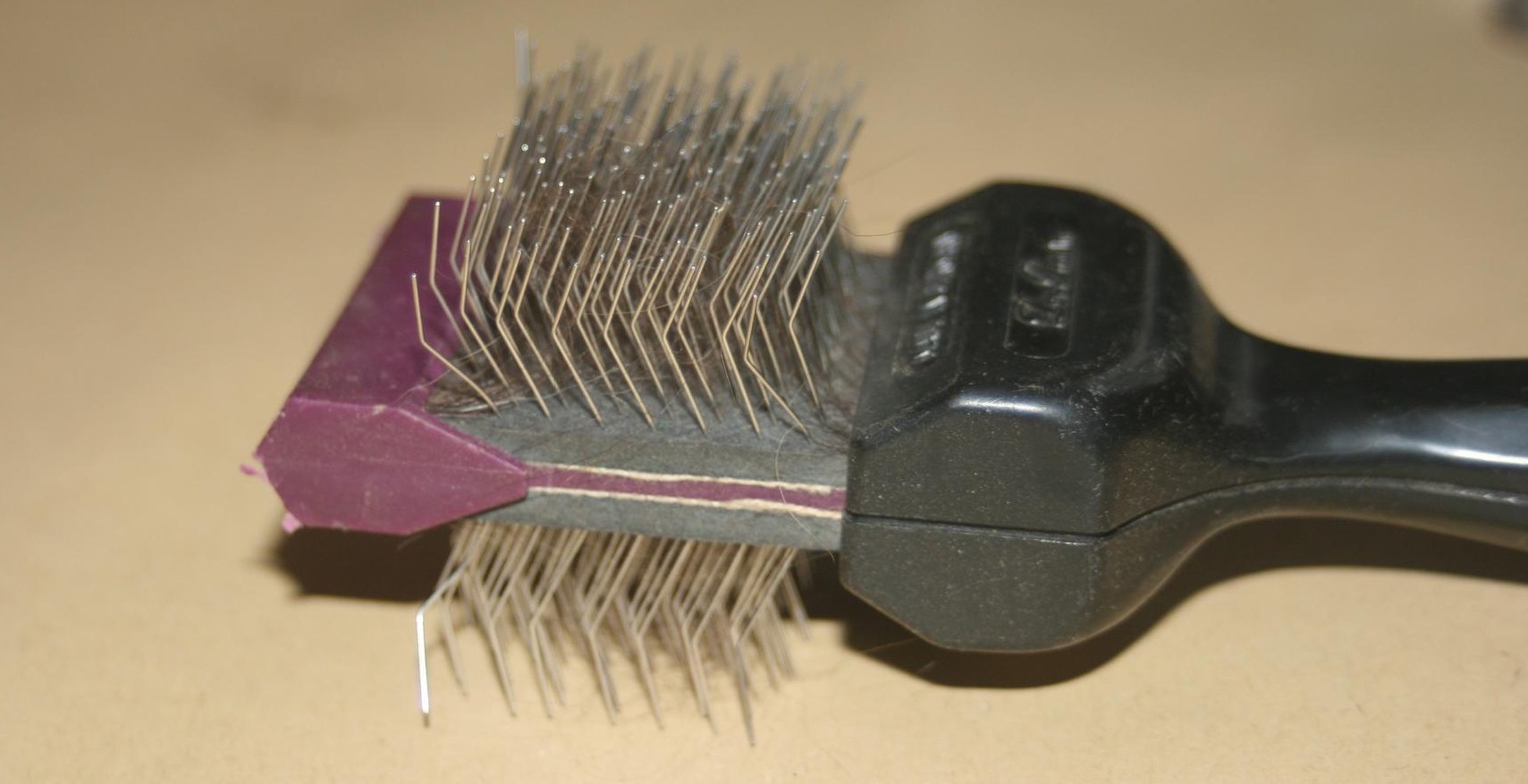 Verstärkt durch das Gummi kann man totes Fell sehr gut rauskämmen.